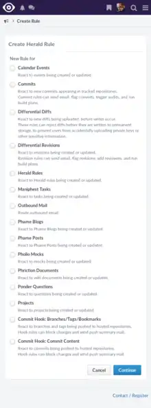 - ↑ The Herald component can be found searching Herald in the Phabricator search box or visiting