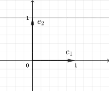 e1 is the unit vector of the x-axis. e2 is the unit vector of the y-axis.