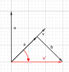 Let R = uv. We know that uR = u(uv) = (uu)v = |u|2v. Now consider vR. We know that R rotates a vector by the angle between u and v. When we rotate v away from u by the angle between u and v, then we get u', which is the reflection of u across v. (See Figure 6.)