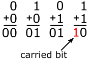 When adding two separate bits together there are four possible combinations. Each of these is shown in the left with its solution.