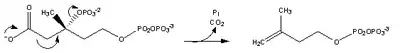 | Mevalonate-5-pyrophosphate to 3-isopentenyl pyrophosphate (IPP) (see also HIDS). | ![]() | mevalonate-5-pyrophosphate decarboxylase |
