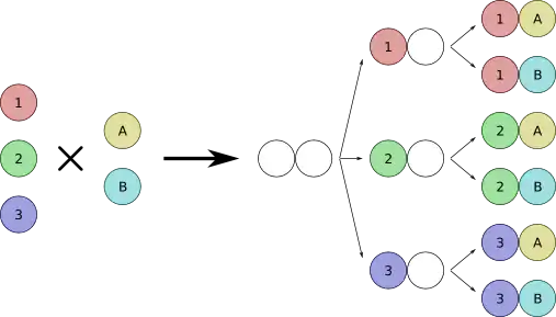 The number of elements in the cartesian product is equal to mn. Note that the total number of outcomes does not depend on the order in which the experiments are realized.
