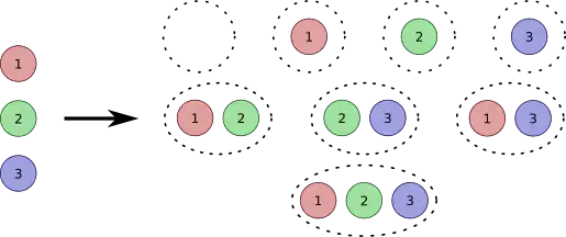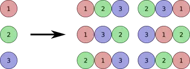 We wish to compute the number of permutations of . Since the set S contains three elements, it has permutations. They can be listed as 123, 132, 213, 231, 312, 321.