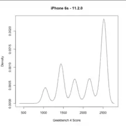 TeckFire's Reddit post sparked interest from Geekbench. A Geekbench employee tested colleagues' iPhones to determine if Apple was purposefully slowing down iPhones [16]. They published the above kernel density function graphs which depict the performance score of iPhones running different versions of IOS. A higher peak means more phones are in that range of performance. In the first graph, which depicts iPhones running IOS 10.2.0, there is one peak. At this time iPhone users were reporting that their phones were shutting down unexpectedly. IOS 10.2.1 introduced a fix to this issue. Geekbench's test showed that iPhones running 10.2.1 had multiple groups of phones with performance lower than the single peak of IOS 10.2.0. Additionally, phones running IOS 11.2.0 had larger performance decreases then IOS 10.2.1 These graphs provided the first numerical evidence that apple likely fixed the sudden shutdown issue by purposefully lowering the performance of its phones. John Poole, the author of the Geekbench post, agreed that Apple was likely determining the health of a phones battery before deciding how much to scale back performance. He warned that the throttling would get worse as batteries continued to age. Poole criticizes Apple for leading consumers to think "my phone is slow so I should replace it”, and not, “my phone is slow so I should replace its battery” [16].