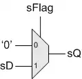 There are two ways to make signal assignments in VHDL. Signal assignments can be made through a concurrent statement or a sequential statement. Assignments in concurrent statements take effect immediately. In the following example code, it can be thought that sQ will always have the value of sD when sFlag = '1'. Otherwise it will be zero. This will take effect one simulation "tick" after sD or sFlag changes.