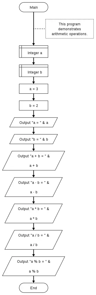 Output "a - b = " & a - b