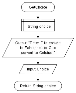 Output "Enter F to convert to Fahrenheit or C to convert to Celsius:"