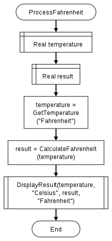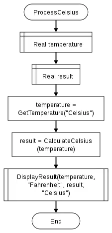 Call DisplayResult(temperature, "Fahrenheit", result, "Celsius")