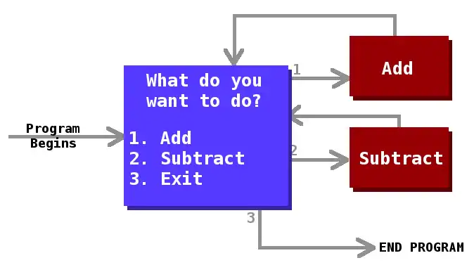 If we don’t want a program to quit automatically, we will usually put a program loop somewhere within, where the same kinds of tasks are done every cycle... This could be displaying a menu, having the user select where to go, and doing some operation, and then returning back to the menu. Similarly, a game isn’t very playable if it exits immediately once you launch it. A game also has a game loop where some common events are done every cycle of the game.