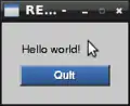 view layout [ text "Hello world!" button "Quit" [unview] ]