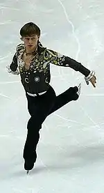 Finally, you need to exit the spin. Start by pulling out your arms slightly and raising the free knee (this will slow down the spin). Then, bend the skating (right) knee deeply, rocking back onto the center of your skate and unwrap the free leg, extending it behind you forcefully, making sure that your upper body remains upright. This will translate your rotational motion into backward motion on an right back edge. This is the same exit that you will use to land multirevolution jumps, so it is worth practising it often. An alternative exit is to drop the left skate onto the ice and exit on the left backward inside edge.