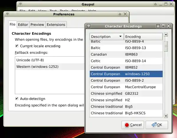- 3. If you use different language than english, change encoding: Edit-> Preferences-> Add-> choose any from the list.