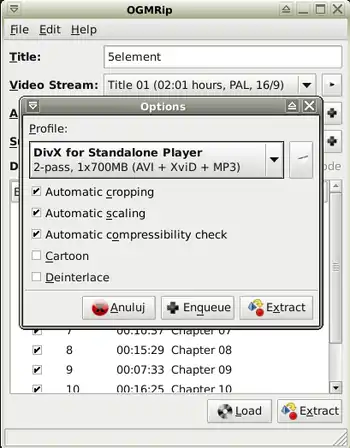 - 2. Run it: Menu-> Multimedia-> DVD Encoder OGMRip