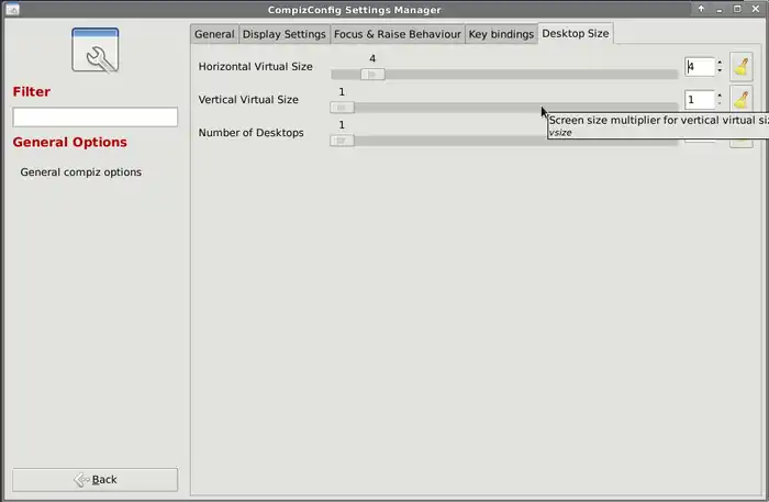 - 2. Go to: General-> General Options-> Desktop Size and set Horizontal Virtual Size for "4".