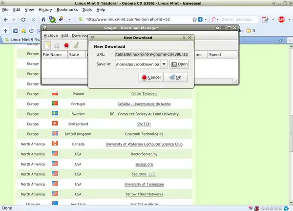 - a. Run it from: Menu-> Network-> Gwget Download Manager.