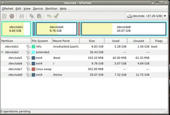 - 2. Run GParted (as root): Menu-> System-> GParted