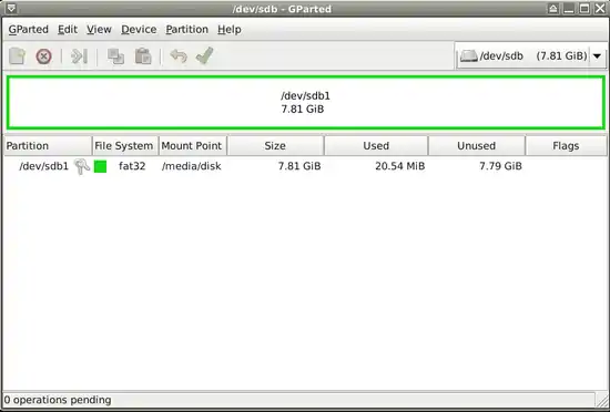 - then change disk drive choosing "/dev/sdb" on top right corner.