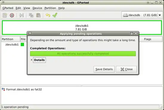 - It'll make "vfat" file system on "/dev/sdb1" partition".
