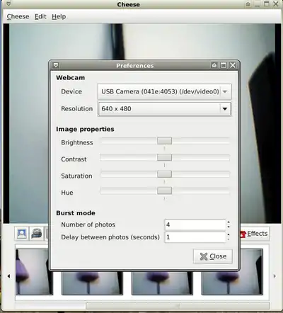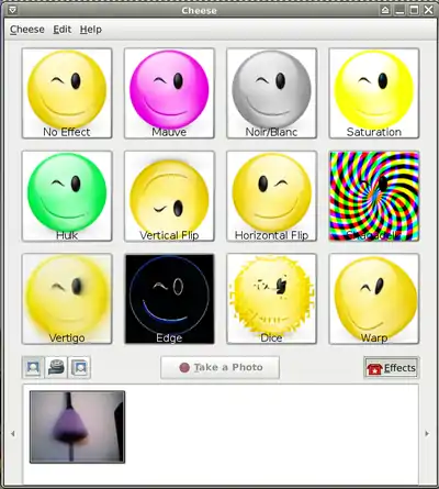 - 2. Run it from: Menu-> Multimedia-> Cheese.