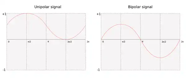 In the two basic methods of modulation synthesis that occur, ring modulation and amplitude modulation, there are two unique types of signal that occur in each method: bipolar and unipolar signals. A bipolar signal is the type of signal we have been examining in previous chapters, it has both a negative and positive amplitude and the waveform generally "rests" around zero in a time-domain plot. A unipolar signal is a bipolar signal that has been constant-shifted, that is, a constant value added to the overall signal to shift it into a range above zero, typically between 0 and 1. The reason for these two different types of signal follows.