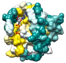 Off state: In the "off" state Ras is bound to the nucleotide guanosine diphosphate (GDP).