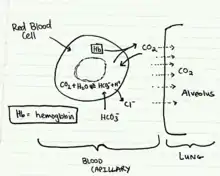 This reaction usually progresses very slowly. With the help of the enzyme carbonic anhydrase, the formation of bicarbonate and protons in the red blood cells is accelerated. This causes the pH of the tissue to decrease and promote the dissociation of oxygen from hemoglobin to the tissue, allowing the tissue to obtain enough oxygen to meet its demands. Conversely, in the lungs, oxygen concentration is high. The binding of oxygen causes hemoglobin to release protons, which combine with bicarbonate to drive off carbon dioxide in exhalation. Since these two reactions are closely matched, there is little change in blood pH.