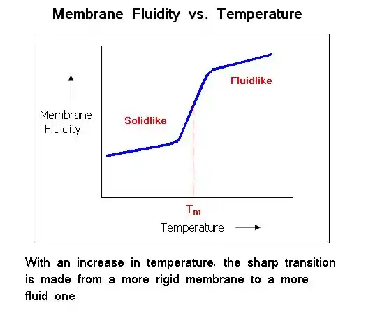 The extent of fluidity can be determined by the membrane's melting temperature. As heat is increased, the membrane makes a sharp transition from a rigid state to a more fluid state. A low melting temperature indicates the presence of fatty acids that promote fluidity while a high melting temperature indicates the presence of fatty acids and cholesterol that restrict fluidity.