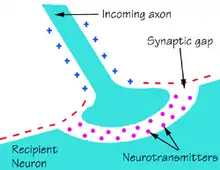 The synapse is a junction between the terminal button of an axon of one neuron and the dendrite of another neuron. In this junction, one neuron sends information to another neuron via electrical or chemical signaling. The process for sending information is called action potential where electrical impulses are sent down an axon of a neuron.