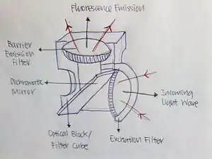 The figure below illustrates the fluorescence probe with emission of light: