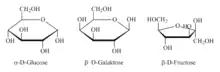 Ring Structure of Monosaccharides After hemiacetals and hemiketals form, the carbohydrate will form a ring structure. For example, in Glucose the Hydroxyl group from the Carbon 6 will attack the carbonyl Carbon from Carbon 1, with a hemiacetal intermediate. The Carbon that will then change from a carbonyl carbon to a carbon with a hydroxy will then be called an anomeric carbon. An anomeric carbon is the hemiacetal or hemiketal that is bounded by an alcohol group and an ester bond. Anomers are another form of isomers that differ in the hemiacetals or hemiketals.The most common structure of a glucose ring is the alpha conformation in contrast with the sterically hindered Beta conformation. The alpha conformation is structure in which the hydroxyl in Carbon 1 is facing the opposite of the plane as carbon 6, while the beta conformation is facing in the same plane as the Carbon 6 thus causing steric hinderence. For this reason of steric hinderance the alpha conformation is much more stable than beta.