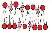 The presence of the lipids in the membrane structure of a cell is vital for the cell especially affecting its fluidity. As addressed in the section below, this is necessary to allow things to flow in and out of the cell. One factor that plays a big role in this is cholesterol as shown below. Another one is the presence of double bonds. The more the double bonds, the greater the amount of kinks or curve in the lipid and therefore more free space.