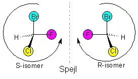 Enantiomers are generally classified with either an R or S configuration. To determine whether a stereocenter is labeled R or S, one must first rank its four substituents by molecular weight. The highest priority substituent (rank 1) will be the substituent atom with the largest molecular weight; conversely, the lowest priority substituent (rank 4) will be the substituent atom with the lowest molecular weight. For this reason, a hydrogen substituent is always given the lowest priority. Once the four substituents have been ranked by priority, a series of rules can be followed to determine the stereocenter's R or S configuration.[1]