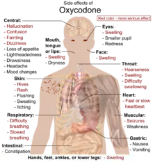 - ↑ American Society of Health-System Pharmacists (2009-03-23). "Oxycodone". U.S. National Library of Medicine, MedlinePlus. http://www.nlm.nih.gov/medlineplus/druginfo/meds/a682132.html. Retrieved 2009-03-27.