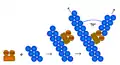 Branched actin networks can form from polymerization with Arp2/3 complexes. Arp2/3 complex is a seven-subunit protein that includes two actin-related proteins, Arp2 and Arp3, and five other smaller proteins. Nucleation of Arp2/3 complex associated with an activator such as WASp can start the actin polymerization. It binds to the side of an actin filament and nucleates to initiate growing of a new Y-shaped filament branch at a 70° angle. In this formation, the structures of two subunits Arp2 and Arp3 are similar to actin. These two subunits are then triggered by the binding of activator to mimic the barbed end of a filament.