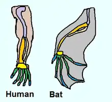 It is through these similarities in morphological structure that scientists can deduce some sort of common ancestor which contained these structures, and from there hypothesize on where the speciation occurred. Of course, it is much harder to deduce this for something such as a bat and a human, but there are many cases which this concept can be more directly applied. For example, the different species of finches due to there different beak sizes and shapes.