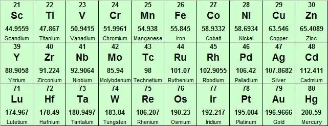 Transition metals are the elements in groups 3-12 in the d-block of the periodic table. They are known to have 2 or more oxidation states.