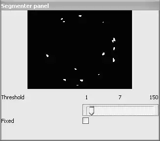 Segmenter post-processing performs some filtering on the image (erosion/dilution) to get smoother blobs that ease the detection of contours. Also, it is possible to apply a mask image (right) that rejects blobs outside a certain region of the image. |