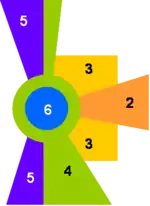 The Sector Model (shown left) features the same CBD as the Concentric Ring Model, but this time it is completely encompassed by a "poor" residential area, with two opposing branches. To one side of these branches is the industrial area dealing with manufacturing. Note how this undesirable "neighbour" is separated from the higher-end homes by the low wealth areas, so the residential areas 2 and 3 are only next to other houses.