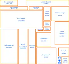 The most popular form of on-line advertising is banner ads. A banner ad is a special sort of hypertext link. The link is displayed as a box containing graphics, usually with text elements, or animation. A Web server is instructed to bring up a particular Web page when a user clicks on the banner. Much like print ads, banner ads come in a variety of shapes and sizes. The Internet Advertising Bureau (IAB) specifies eight different banner sizes, according to pixel dimensions. The IAB's standard banner sizes are: • 486 x 60 Pixels (Full Banner) • 392 x 72 Pixels (Full Banner with Vertical Navigation Bar) • 234 x 60 Pixels (Half Banner) • 120 x 240 Pixels (Vertical Banner) • 125 x 125 Pixels (Square Button) • 120 x 90 Pixels (Button 1) • 120 x60 Pixels (Button 2) • 88 x 31 Pixels (Micro Button) (http://www.iab.net/iab_products_and_industry_services/508676/508767/ad_unit)