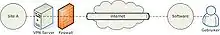 A VPN is a secure pathway through a public network that is used to allow private access to an institutions network. Many businessmen and women use this type of network to communicate with their company network securely using the internet. This communication is usually encrypted for the case that it ends up in the wrong hands. A VPN may be used to share data and give access to databases and printers.