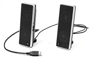 Computer Speakers are the most common type of audio output device. Computer speakers are connected to a computer to provide audio output for things such as computer games, music, TV shows, YouTube videos and more. Some speakers available come in a simple pair, while others come in a entire system with additional speakers and a subwoofer for better sound.