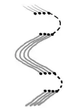 The axial section below of an adult male zebrafish is from the rostral part of the abdominal cavity, where the testis [T] is in the upper part, between swim bladder [sb] and abdominal wall. The area of testis will show largely similar in more caudal sections. The abdominal organs shown in this image are liver [L], pancreas [arrows], spleen [S], intestinal loops [I]. Major blood vessels in this section are dorsal aorta [upper arrow] and posterior cardinal vein [lower arrow], embedded in the kidney [k] intestinal arteries [arrows], intestinal veins [arrows] and epigastric vein [arrow], partly embedded in the liver. The horizontal skeletogenous septum [horizontal line] separates the epaxialis [em] and hypaxialis muscles [hm], which are inserted to this septum and to the spine [sp], and which are also bound to the skin. In the midline, the epaxial muscles insert to the vertical skeletogonous septum [vertical line]. Although organised in myotomes which are oriented perpendicular to the length axis of the fish, these muscles appear cross-sectioned due to their waved course [middle diagram]. The epaxialis includes the dorsal supracarinalis muscles [upper outline], the hypaxialis includes the ventral infracarinalis muscles [lower outline]. The lateralis superficialis muscles [left/right outlines] overlay the peripheral part of the horizontal septum. Pleural rib structures [arrows] can be observed within the hypaxialis. |