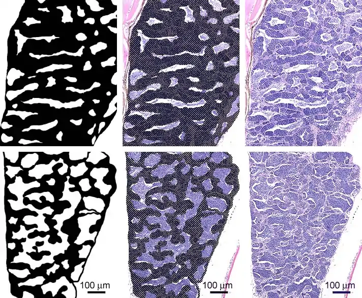 the zebrafish testis is composed of anastomosing seminiferous tubules In these images, the tubule lumina are highlighted (white) to enhance the testis structure; a masked and unmasked image are given for comparison. |