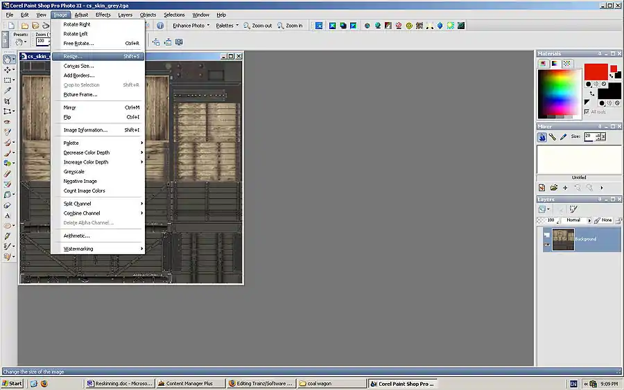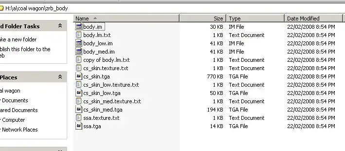 We can see a number of .tga files and generally speaking we are interested in the largest one, cs_skin.tga. Note that this particular model as a couple of alternative cs_skin.tga files that have had their colours changed in a recent version of PaintShop Pro are available in the wagonzip.txt file in the parent folder. To use them overwrite the cs_skin.tga with the appropriate one.