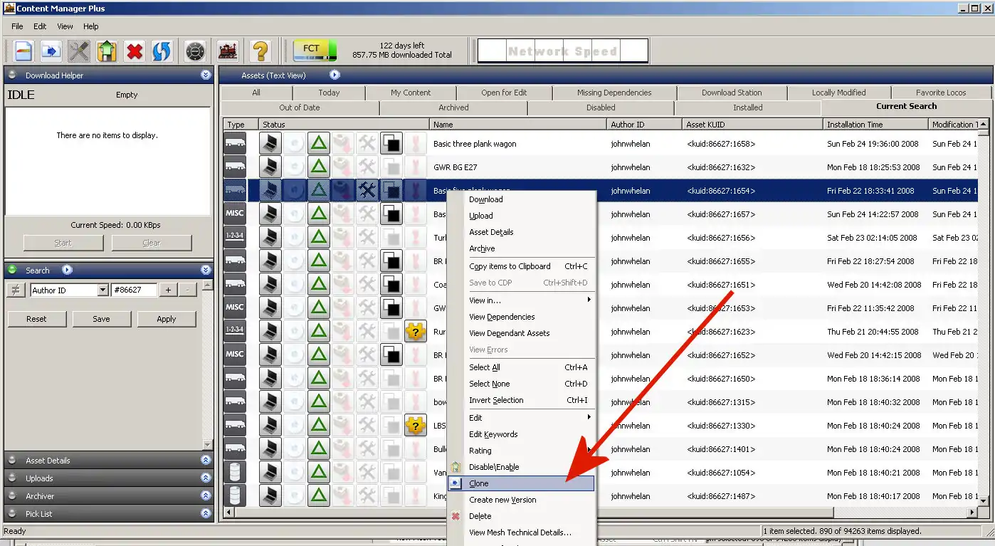 This basically assigns one of your kuids to the cloned item. If you use the copy method, you'll import the asset, and can like many content creators, use groups of kuids to classify assets by clumps of kuids. For example Jointed-Rail's Justin Cornell (Norfolksouthern32) knows certain asset clumps are bogeys, other couplers, wheels, boxcars, loco's... etcetera all because he's organized his work and planned his kuids out ahead of time.
