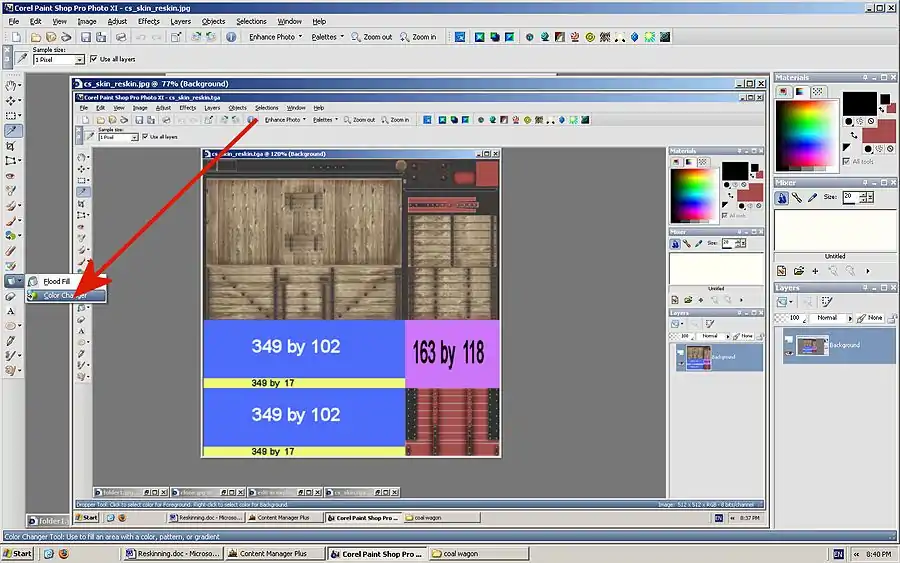 To change the colour of the wagon in Paintshop Pro Xi or later use the colour changer tool.