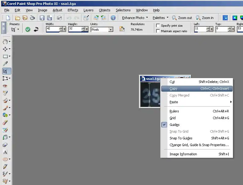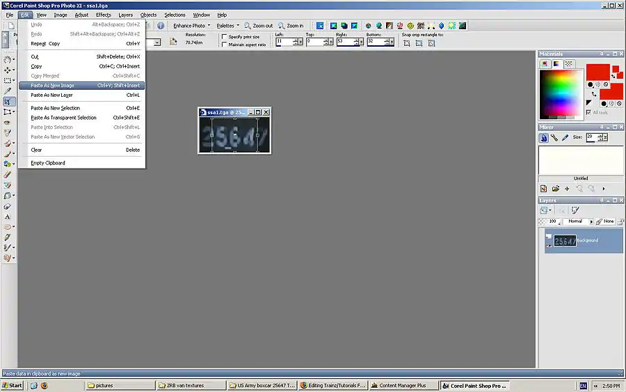 Copy this, then activate the ssa1.tga image by clicking on the blue stripe above and paste as a new layer.