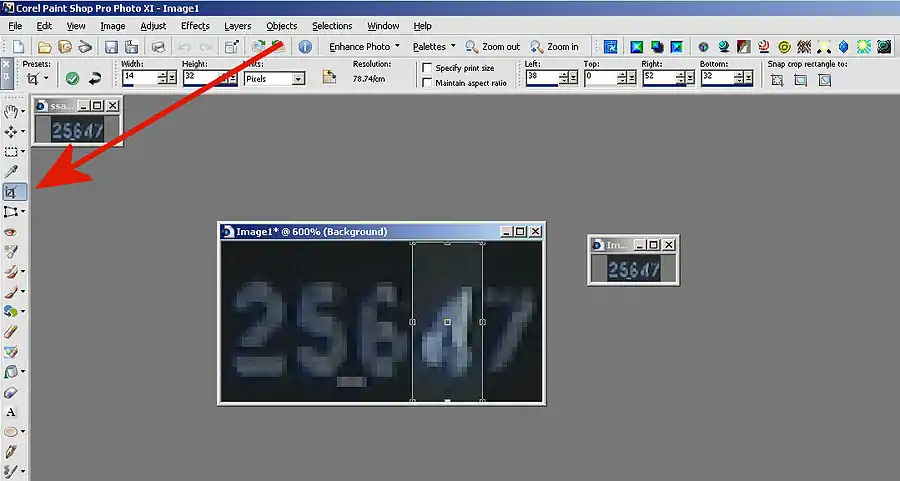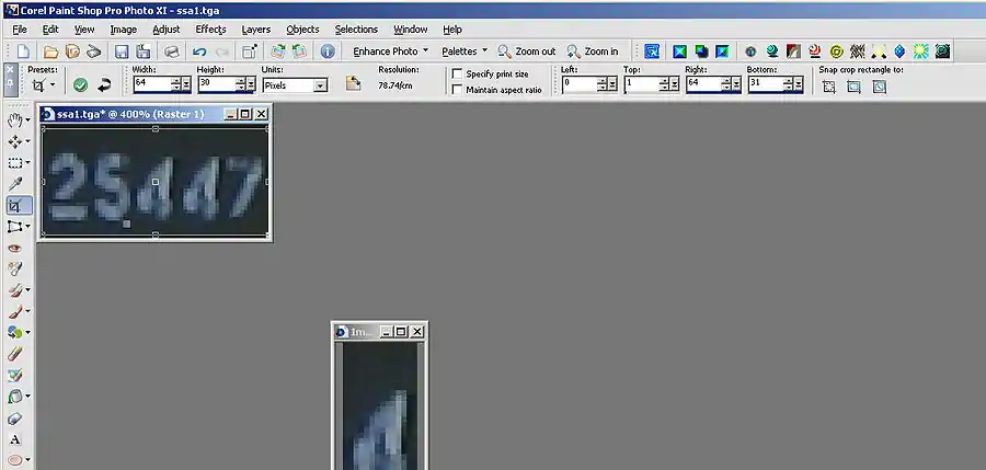 Next we cut a single digit out using the crop tool.