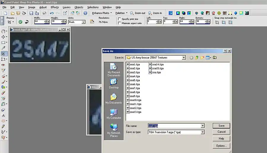 One difficulty with wagon numbers is matching the typeface used so one technique is to crop them number off a photograph and then edit that to give a set of wagon numbers. When we crop use the largest initial photograph available and if possible crop on a power of two so resizing is not required. 64 pixels by 16 pixels etc. The planes can always be resized so that the cropped image matches the wagon.