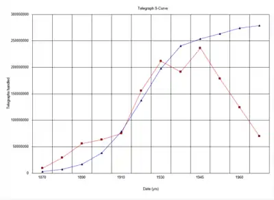 When comparing the S-curve to the actual data collected, it can be said that the initial birth stage of the telegraph was higher than expected due to the niche market and foreseen potential. The growth stage was concise in both models. However, the following maturity stage was shortened and a resulting declination phase commenced, as the development of better communication technologies made the telegraph obsolete. Nevertheless, current technologies and business movements would have not been so prominent without the telegraph aiding their own growth stage.
